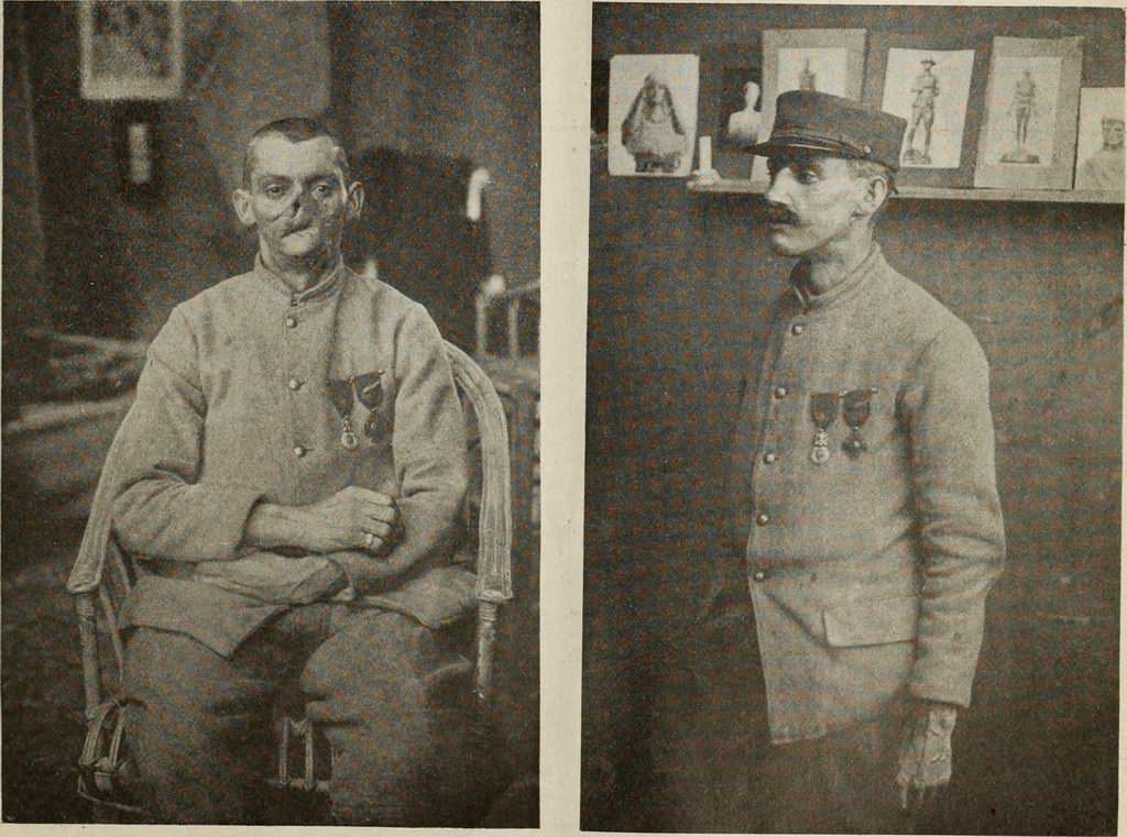 WWI was a tragic time to be a soldier given advances in military technology as well as the nature of trench warfare. Soldiers would pop their heads up out of trenches to fire off rounds or advance, leaving their heads especially vulnerable. It was also a moment in history where medical treatment was starting to get a lot better, so a lot of them suffered from terrible head wounds but survived.
