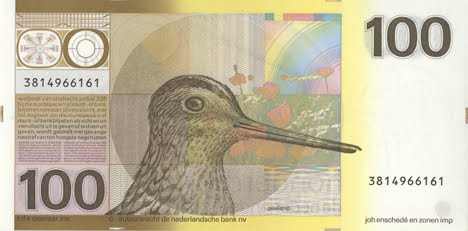 In later redesigns of the 100 guilder banknote, he convinced his clients to replace the stuffy admiral (who did kick some serious English butt) featured on the note with the image of an endangered bird.