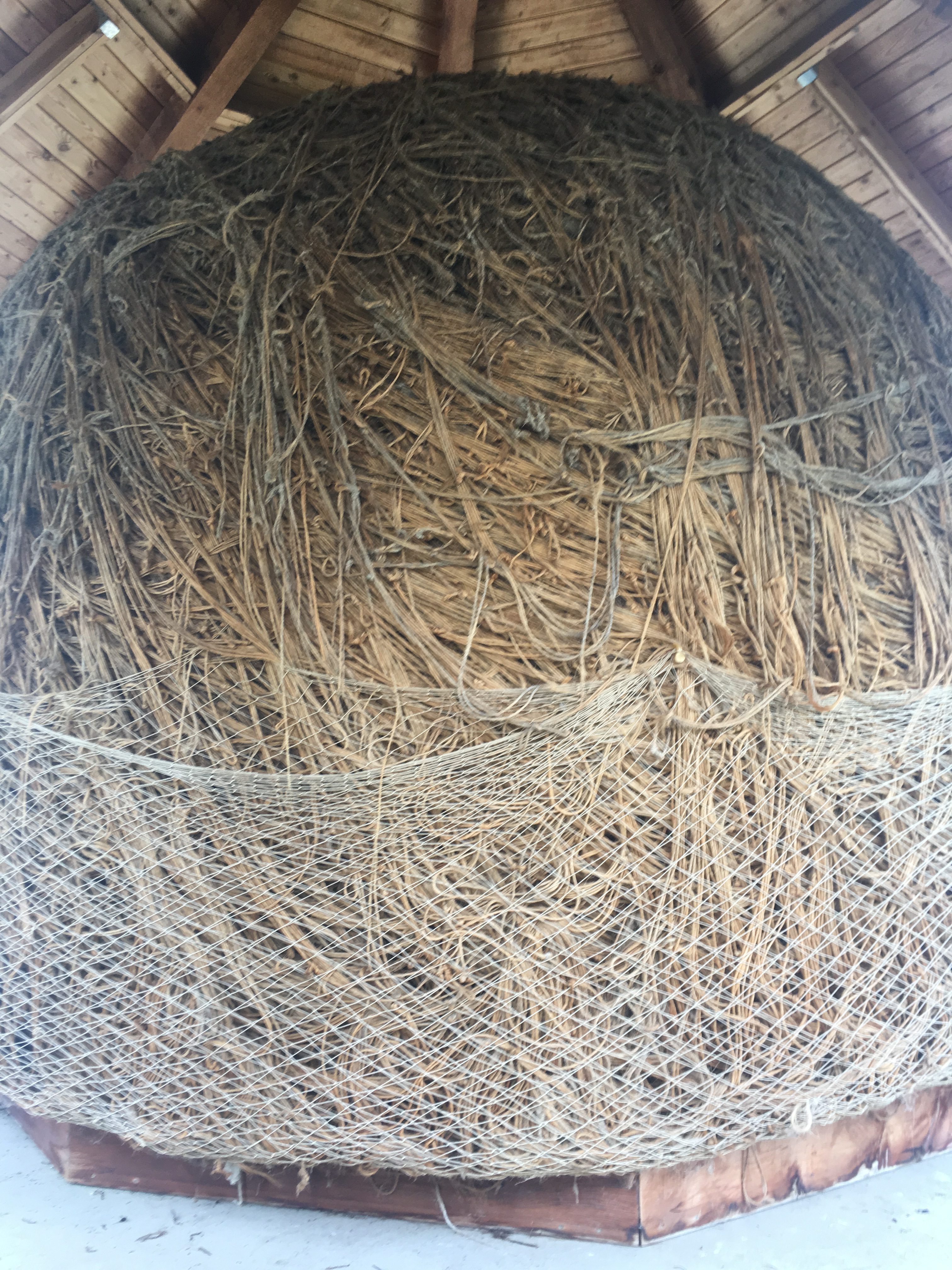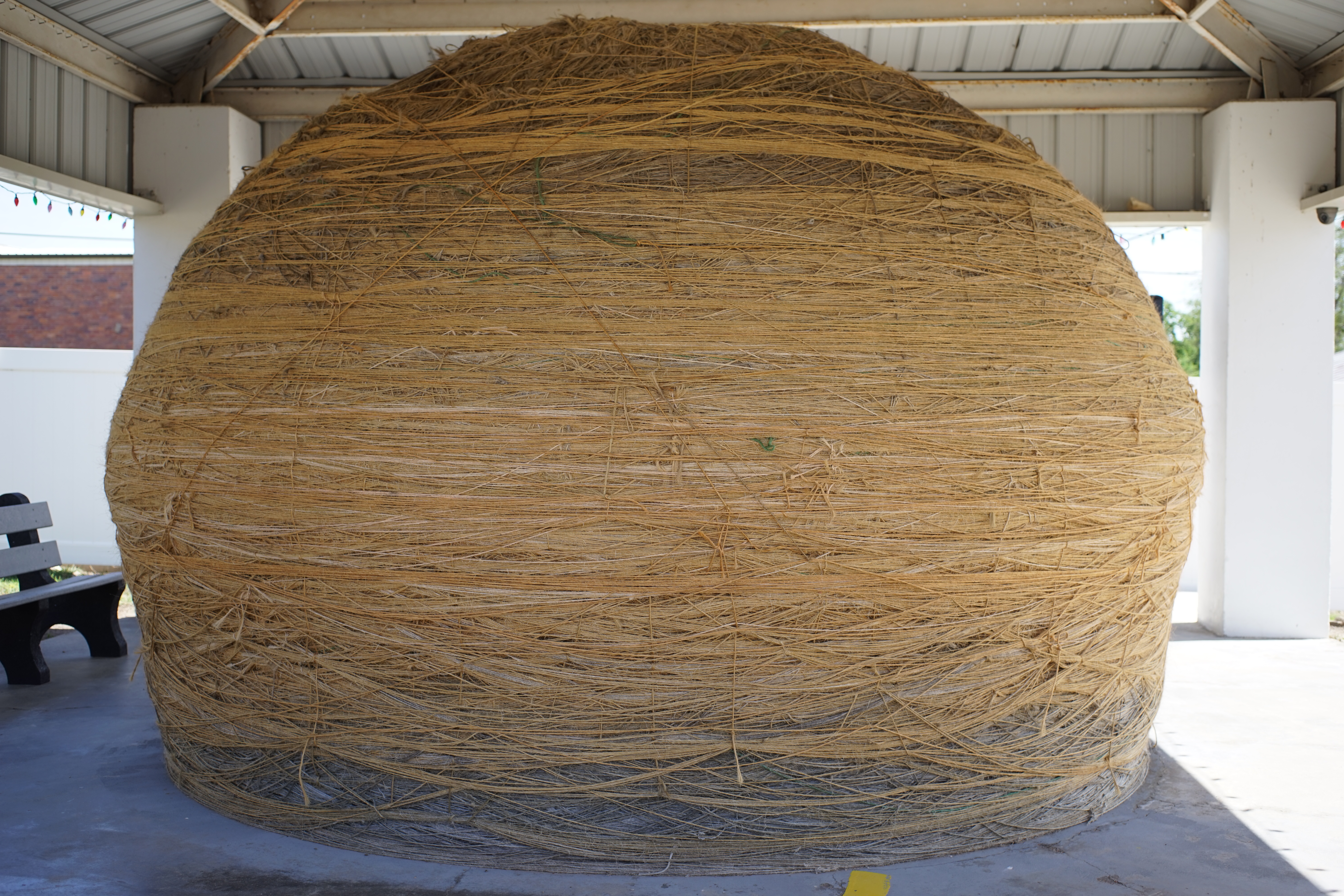 Payne didn’t start rolling his ball until 1987 – a full 37 years after Johnson, but by 1992, the Guinness Book of World Records declared it the largest ball in the world. In a few short years, Payne managed to create a ball that was 42 feet in circumference, 13 feet tall and weighed six tons. The main gripe about J.C. Payne’s ball was that he used artificial, colored nylon twine, while Johnson and Stoeber both used sisal twine. Sisal is an earthy-colored, plant-based material and has that has a classic farm feel to it, whereas nylon feels more manufactured and inauthentic. Nylon also weighs less making Payne’s ball much lighter than both Cawker City and Darwin’s.